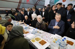 صدر رجب طیب ایردوان اور خاتون اول ایمنہ ایردوان نے ملاطیا میں AFAD ٹیکنوکینٹ عارضی رہائش گاہ میں زلزلہ متاثرین کے ساتھ افطار ڈنر کا اشتراک کیا۔