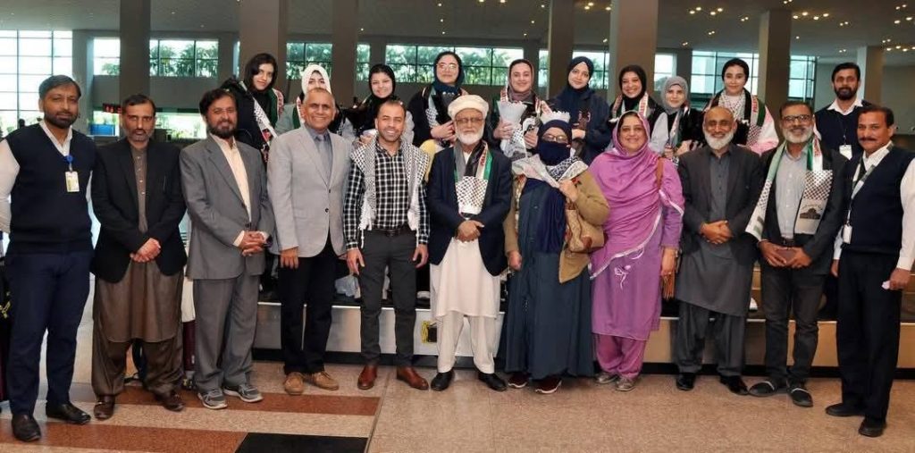 الخدمت فاؤنڈیشن پاکستان کی جانب سے فلسطینی طالبات کو تعلیمی اسکالرشپ فراہم کرنے کے پروگرام کے تحت طالبات کا نیا گروپ پاکستان پہنچ گیا ہے۔ فلسطینی طالبات کے پاکستان پہنچنے پر الخدمت فاؤنڈیشن کے مرکزی صدر پروفیسر ڈاکٹر حفیظ الرحمن، نائب صدر ایئر مارشل (ر) ارشد ملک، ڈائریکٹر فلسطین ایجوکیشن اسکالرشپ پروگرام ڈاکٹر سعد ظفر، فلسطینی سفارت خانے کے نمائندوں اور دیگر حکام نے گرمجوشی سے ان کا استقبال کیا۔