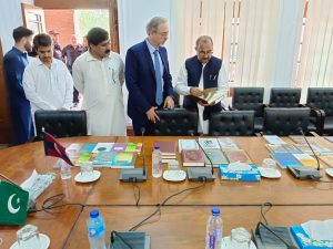 ترک سفیر نے اپنے پشاور دورے کے دوسرے روز یونیورسٹی آف پشاور کے وائس چانسلر ڈاکٹر محمد ادریس سے ملاقات کی اور یونیورسٹی کی لائبریری کے لیے کتابیں تحفتاً پیش کیں۔