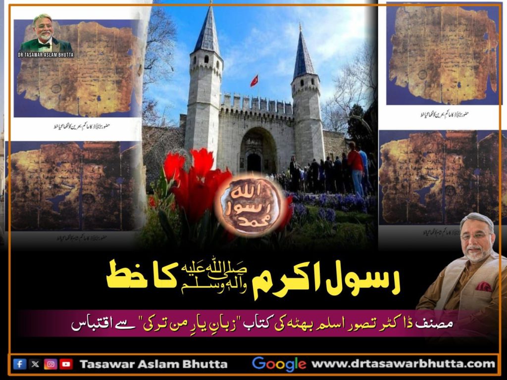 ٹوپ کاپی محل کے اندرونی میوزیم میں حضور اکرم ﷺ کی دیگر متبرکات کے ساتھ وہ خط بھی شوکیس میں رکھا ہے جو آپ ﷺ نے مصر کے حکمران کو لکھا تھا- چھ ہجری (۶۲۸ء)میں جب آپ ﷺ صلح حد بییہ سے واپس تشریف لائے تو آپ ﷺ نے خسرو پرویز کسریٰ ایران ، نجاشی حاکم حبشہ ، ہرقل قیصر روم ، مقوقس شاہ مصر ، حاکم دمشق ابی شمعر غسانی ،حاکم یمامہ اور منذر بن ساوی حاکم بحرین کو خطوط لکھوائے تھے – ان خطوط نے مسلمانوں کے جذبوں اور حوصلوں کو ایک بار پھر جوان کر دیااور تھوڑی سی مایوسی اور الم و غم کی وہ کفیت جو صلح حدبییہ کے موقع پر اور خاص طور حضرت ابو جندل کے واقعہ کی وجہ سے مسلمانوں میں پھیلی تھی وہ یکسر دور ہوگئی- جب آپ ﷺ نے یہ خطوط لکھوانے کا ارادہ فرمایا تو آپ ﷺ کو بتایا گیا کہ بادشاہ آپ کا خط صرف اسی صورت میں قبول کریں گے جب ان پر آپ ﷺ کی مہر لگی ہوگی اس مقصد کے لئے آپ ﷺ نے چاندی کی انگوٹھی بنوائی تھی جس پر مہر نبی ثبت تھی – اس انگوٹھی پر محمد رسول اللّٰہ کے الفاظ درج تھے – مہر بنواتے وقت آپ کی غیرت نے گوارہ نہ کیا کہ آپ کا نام اللّہ سے پہلے آئے لہٰذا اس مہر کو اس طرح بنوایا یہ نقش تین سطروں میں درج تھے – اللّہ پہلی سطر میں ، دوسری سطر میں رسول اور محمد تیسری سطر میں لکھا تھا – صحیح بخاری کی روائیت (۵۸۶۶)کے مطابق یہ انگوٹھی حضرت عثمان رضی تعالیٰ عنہ سے اریس کے کنوئیں میں گر گئی تھی اور تلاش کے باوجود نہ مل سکی جس پر آپ نے اس کی ہو بہو نقل تیار کروائی ۔ یہ انگوٹھی بھی استنبول کے ٹوپکاپی میوزیم میں موجود ہے – ان میں سے صرف چار خطوط استبداد زمانہ سے محفوظ رہے اور آج بھی موجود ہیں – جن کی تاریخی حثیت ثابت ہے – ایک خط اردن کے دارلحکومت عمان کی شاہ حسین مسجد کے میوزیم میں ہے – جو آپ ﷺ نے ہرکولیس قیصر روم کو لکھا تھا اور حضرت دحیہ بن خلیفہ کلبی یہ خط لے کر قیصر روم کے دربار میں پہنچے تھے اور یہ واقعہ سیرت النبی کی ہر کتاب میں موجود ہے (مجھے اس خط کی زیارت کی سعادت بھی نصیب ہوئی ) باقی تین خطوط استنبول کے ٹوپکاپی میوزیم میں ہیںان میں حاکم شام اور حاکم بحرین کو لکھے خطوط بھی توپ کاپی میوزیم محفوظ ہیں ۔ ایک اور خط جو آپ نے مسلیمہ کذاب کو لکھا تھا وہ بھی ان خطوط کے ساتھ رکھا ہے مقوقس کو لکھا خط میری نظروں کے سامنے شیشے کے ایک شوکیس میں سجا تھا- میں نے اس خط کے بارے میں کئی بار پڑھا تھا – متعدد بار اس کی شبہیہ کتابوں میں دیکھی تھی- آج جب آپ ﷺ کی لکھوائی تحریر میری نگاہوں کے سامنے تھی تو مجھے اپنی آنکھوں پر یقین نہیں آرہا تھا-کہ آج مجھے اس خط کو دیکھنے کا شرف حاصل ہو رہا ہے جو کبھی آپ ﷺ کے دست مبارک سے گذرا تھا- میں اپنی قسمت پر نازاں تھا – مجھے تاریخ کے اوراق پر درج اس خط کے بارے میں لکھی وہ تفصیل یاد آرہی تھی جو آپ ﷺ نے مصر کے عیسائی مقوقس کو لکھا تھا- مصر کے حاکم کو مقوقس کہا جاتا تھا -اور عرب مصر کو قبط کے نام سے پکارتے تھے – مقوقس مصر کا اصل نام جریج بن متی تھا -میری چشم تصور کے سامنے وہ منظر آگیا- جب حضرت حاطب بن ابی بلتعہ حضور اکرم اللّٰہ علیہ والیہ وسلم کا یہ خط لے کر مقوقس مصر کے دربار میں پہنچے تھے – مقوقس بڑے کرو فر کے ساتھ اپنا دربار سجائے بیٹھا تھا – حضرت حاطب رضی تعالیٰ عنہ اس کے دربار میں پیش ہوئے تو انہوں نے حضور اکرم اللّٰہ علیہ والیہ وسلم کا خط اسے دینے کے بعد بڑی بے خوفی اور دلیری سے اسے مخاطب کرتے ہوئے فرمایا کہ “ تمہاری اس زمین پر تم سے پہلے بھی ایک شخص گذرا ہے جو اپنے آپ کو رب اعلیٰ سمجھتا تھا- اللّٰہ نے اسے آخر واولّ کے لئے عبرت بنا دیا – پہلے تو اس کے ذریعے لوگوں سے انتقام لیا اور پھر خود اس کو انتقام کا نشانہ بنایا – لہذاٰ دوسرے سے عبرت پکڑو- کہیں ایسا نہ ہو کہ دوسرے تم سے عبرت پکڑیں “مقوقس نے جواب دیا کہ “ ہمارا ایک دین ہے جسے ہم چھوڑ نہیں سکتے جب تک ہمیں اس سے بہتر دین نہ مل جائے “حضرت حاطب نے فرمایا-“ ہم تمہیں اسلام کی دعوت دیتے ہیں جسے اللّٰہ نے تمام ادیان سے بہتر بنایا ہے – دیکھو ! اس نبی نے جب لوگوں کو اسلام کی دعوت دی تو اس کے خلاف اہل 