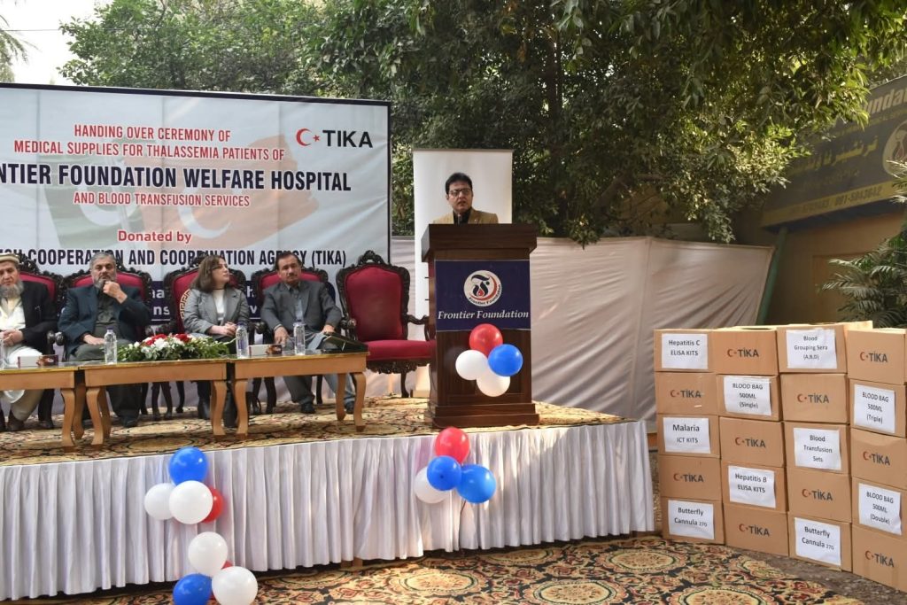 ترکی کی سرکاری ترقیاتی ایجنسی TİKA نے پشاور میں واقع فرنٹیئر فاؤنڈیشن کو طبی مواد اور کنزیوم ایبلز فراہم کیے ہیں، جس کا مقصد تھیلیسیمیا کے مریضوں کے لیے اسکریننگ، خون کی منتقلی کی حفاظت اور مجموعی سروس کوالٹی میں بہتری لانا ہے۔