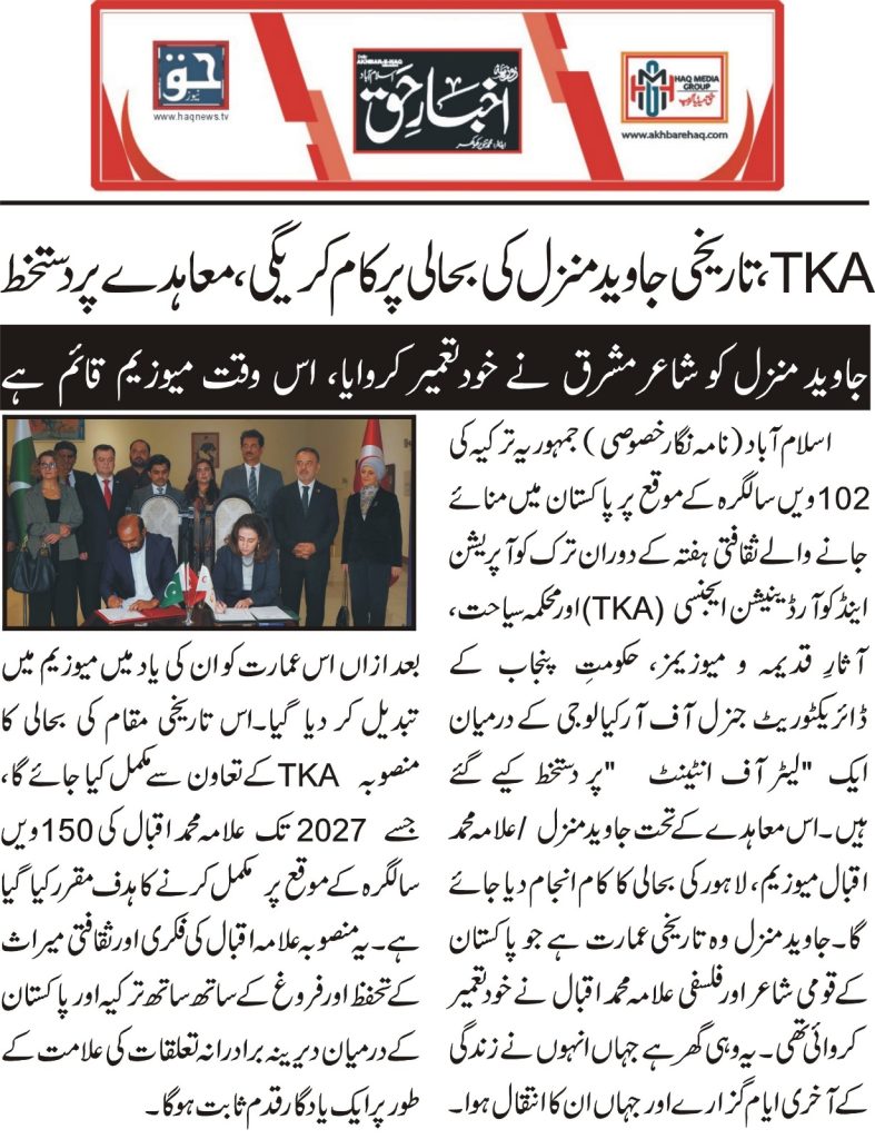 یہ منصوبہ ترکیہ اور پاکستان کے درمیان مشترکہ ورثے، دوستی اور ثقافتی تعلقات کی علامت قرار دیا جا رہا ہے۔ TİKA کے مطابق، اس اقدام کا مقصد نہ صرف تاریخی عمارت کو اصل حالت میں بحال کرنا ہے بلکہ اسے ایک علمی و ثقافتی مرکز کے طور پر فعال بنانا بھی ہے تاکہ نئی نسل علامہ اقبالؒ کے افکار اور نظریات سے واقف ہو سکے۔