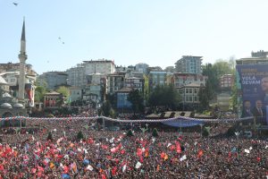 صدر اور جسٹس اینڈ ڈویلپمنٹ پارٹی کے چیئر مین رجب طیب ایردوان نے ریز میں ریلی سے خطاب کیا۔